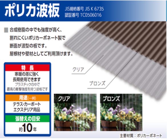 アイリス ポリカ波板 12尺(3640mmx655mm) ブロンズ ※10枚以上1枚単位で購入可能 NIPC-1207